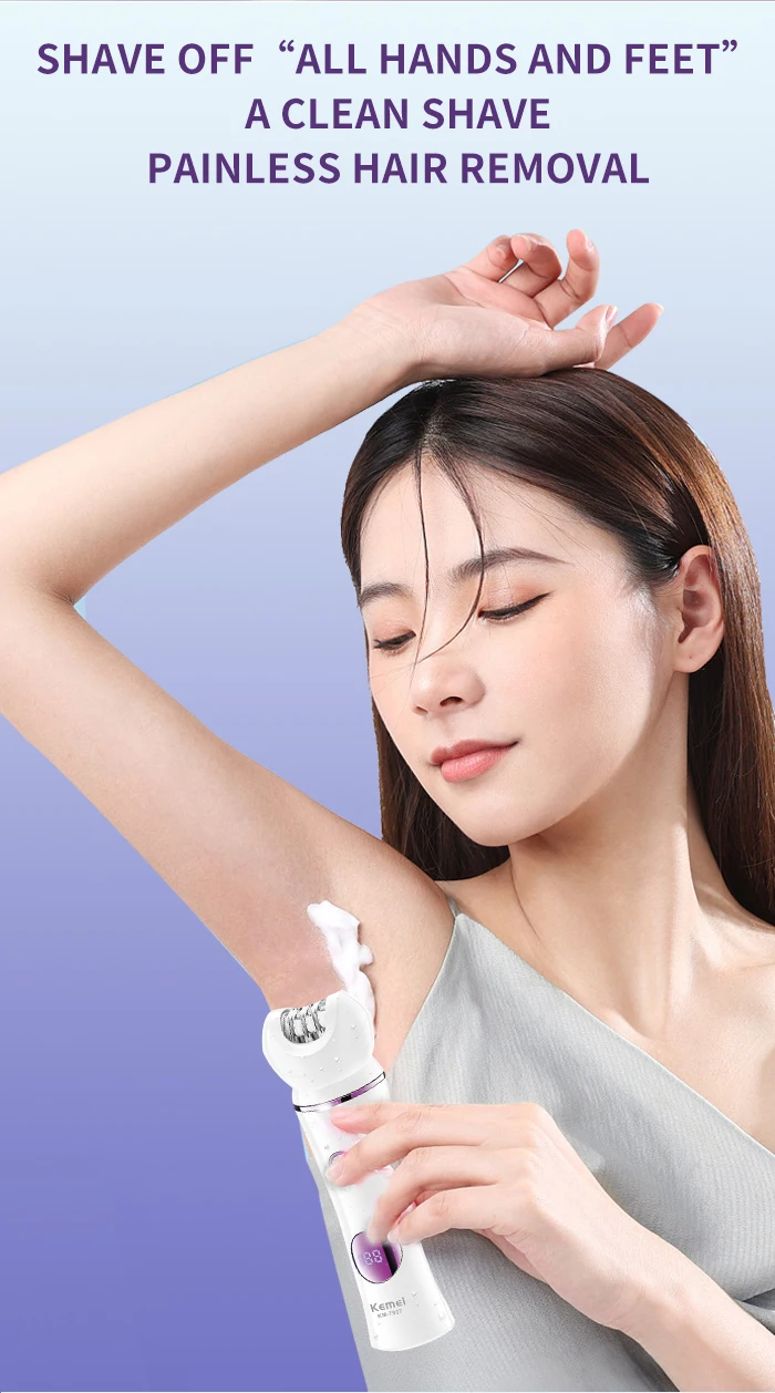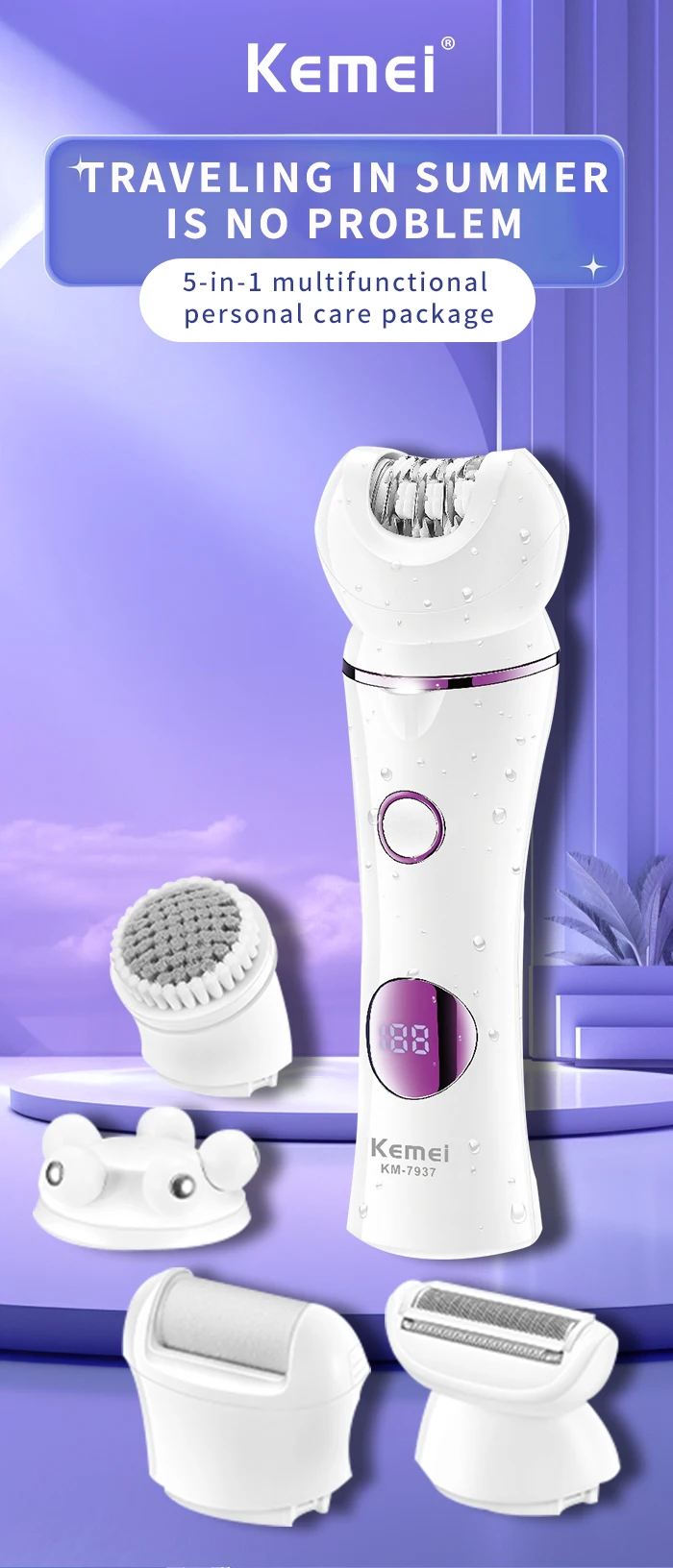 Kemei 5in1 Women Epilator Fo Face Lady Electric Shaver Rechargeable Body Hair Removal Callus Remover Bikini Trimmer wet dry