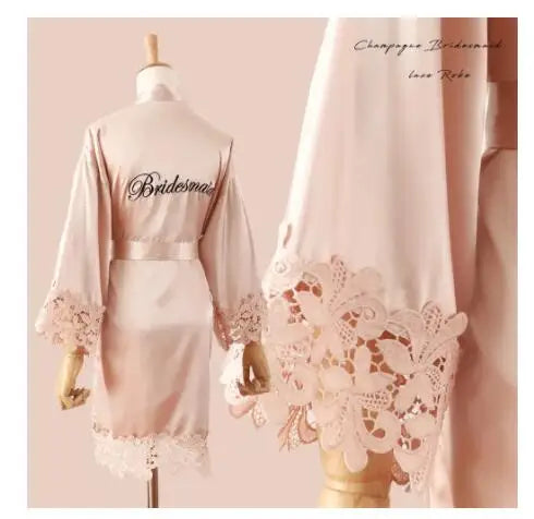 Summer Lace Sleepwear Bride&Bridemaid Wedding Robe Gown Solid Embroidery Kimono Bathrobe Women Casual Home Night Dress M L Xl